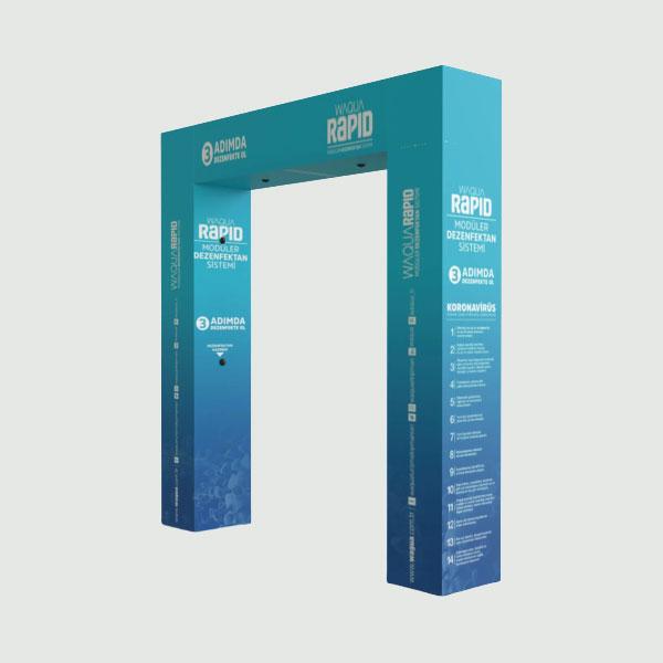WAQUA RAPID; kurulumundan sonra, hemen çalışmaya hazır modüler bir üründür. İçerisinden geçen insanları akıllı sensör teknolojisi sayesinde tanımlar ve solüsyon püskürtme işlemini başlatır. Yaklaşık olarak 3-4 saniye boyunca 6 noktadan püskürterek çıkardığı solüsyon ile dezenfeksiyon işlemini gerçekleştirir.